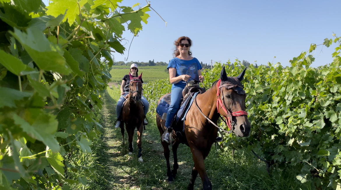 La combinazione perfetta tra natura, divertimento e gusto! Una passeggiata a cavallo che ti condurrà alla scoperta del territorio grazie a un percorso rurale che si snoda tra i vigneti e i cipressi delle colline moreniche. Un'esperienza per conoscere a fondo la zona di Sommacampagna, un'area vitivinicola destinata alla produzione di uve per il vino Custoza DOC. In seguito raggiungeremo l'azienda agricola Monte del Frà, dove avrai l’opportunità di visitare la cantina di vinificazione e le sale di affinamento. Infine è prevista una degustazione per assaporare 3 vini di loro produzione accompagnati da un gustoso tagliere di salumi e formaggi locali.