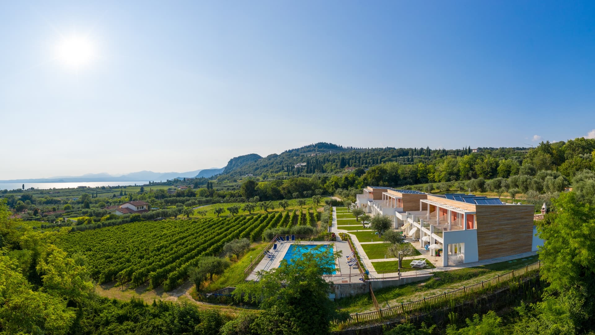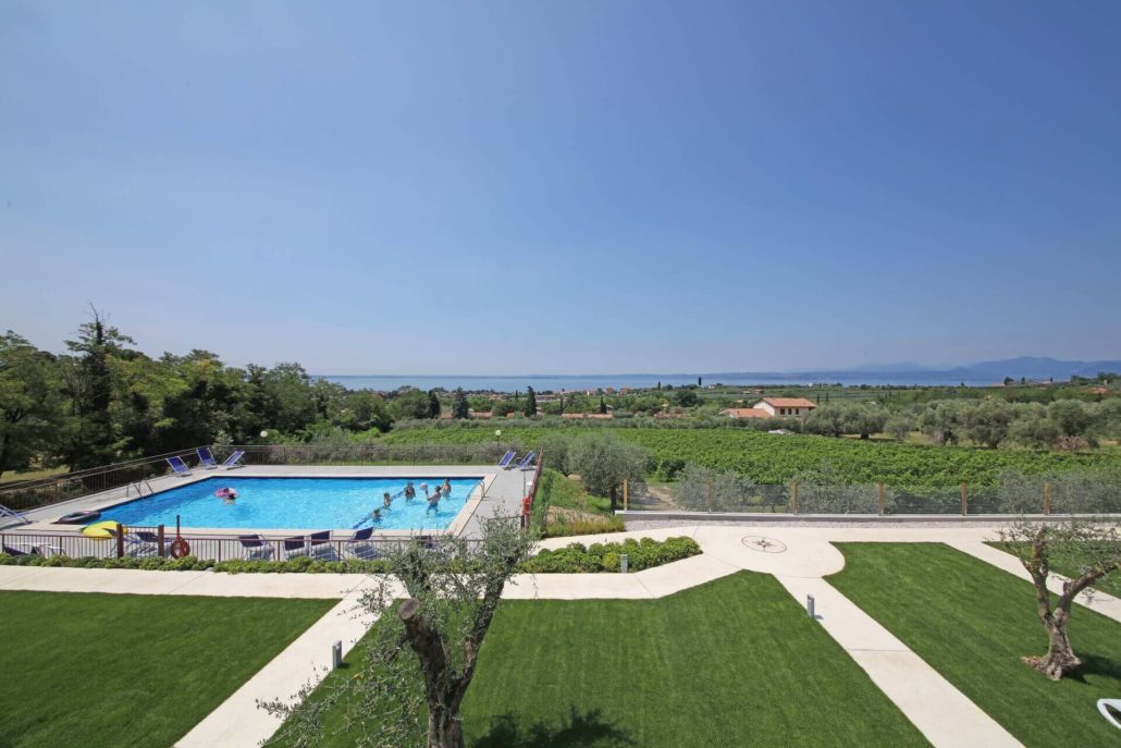 Qui la giornata prende un ritmo più dolce, tra un tuffo nella piscina con vista Lago di Garda, una pausa sui lettini e un aperitivo quando il tramonto addolcisce i contorni. Il complesso è moderno e curato e mette a disposizione giardino con area giochi, zona barbecue, posto auto riservato e lavanderia, per giornate semplici e senza pensieri.