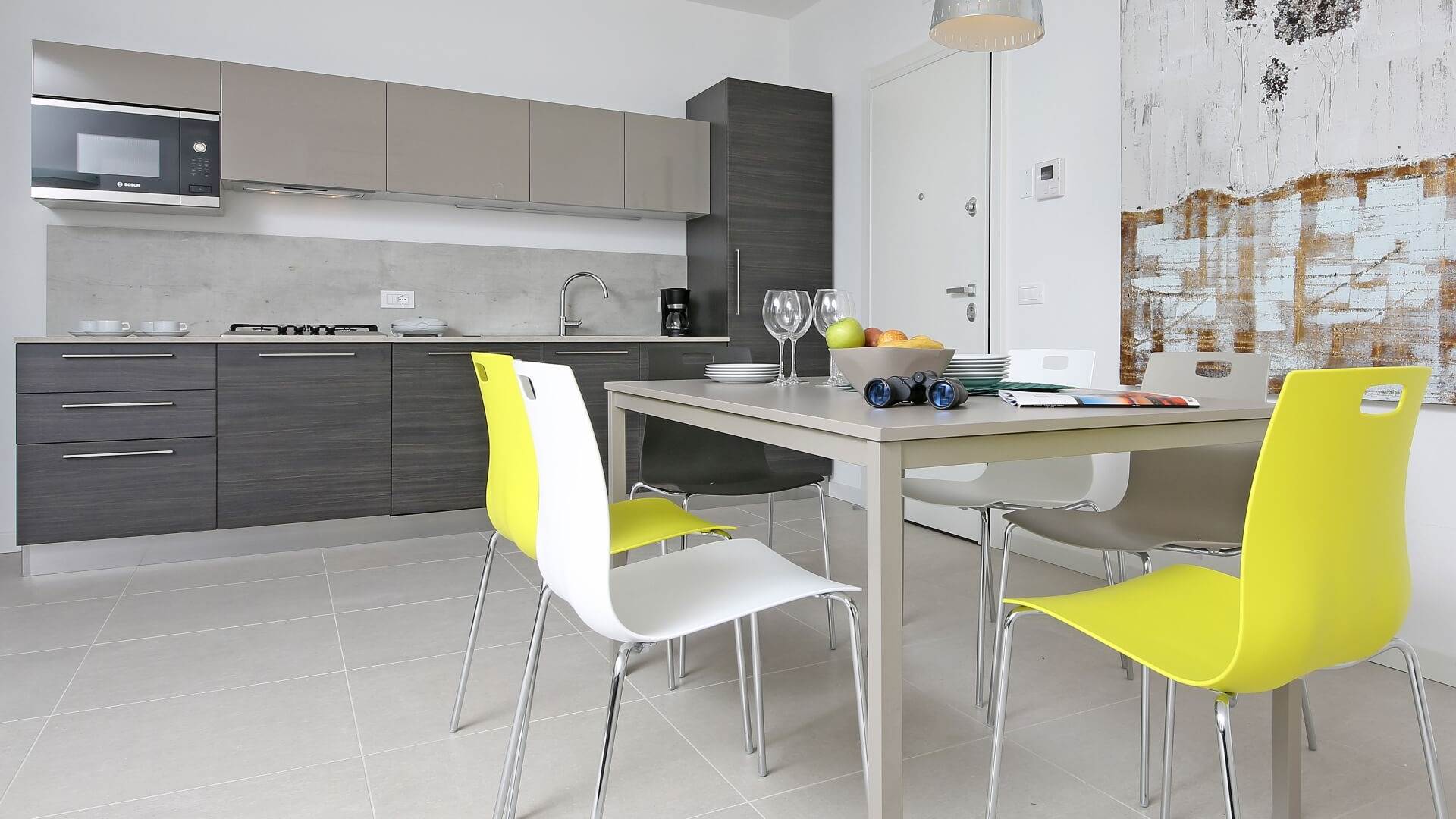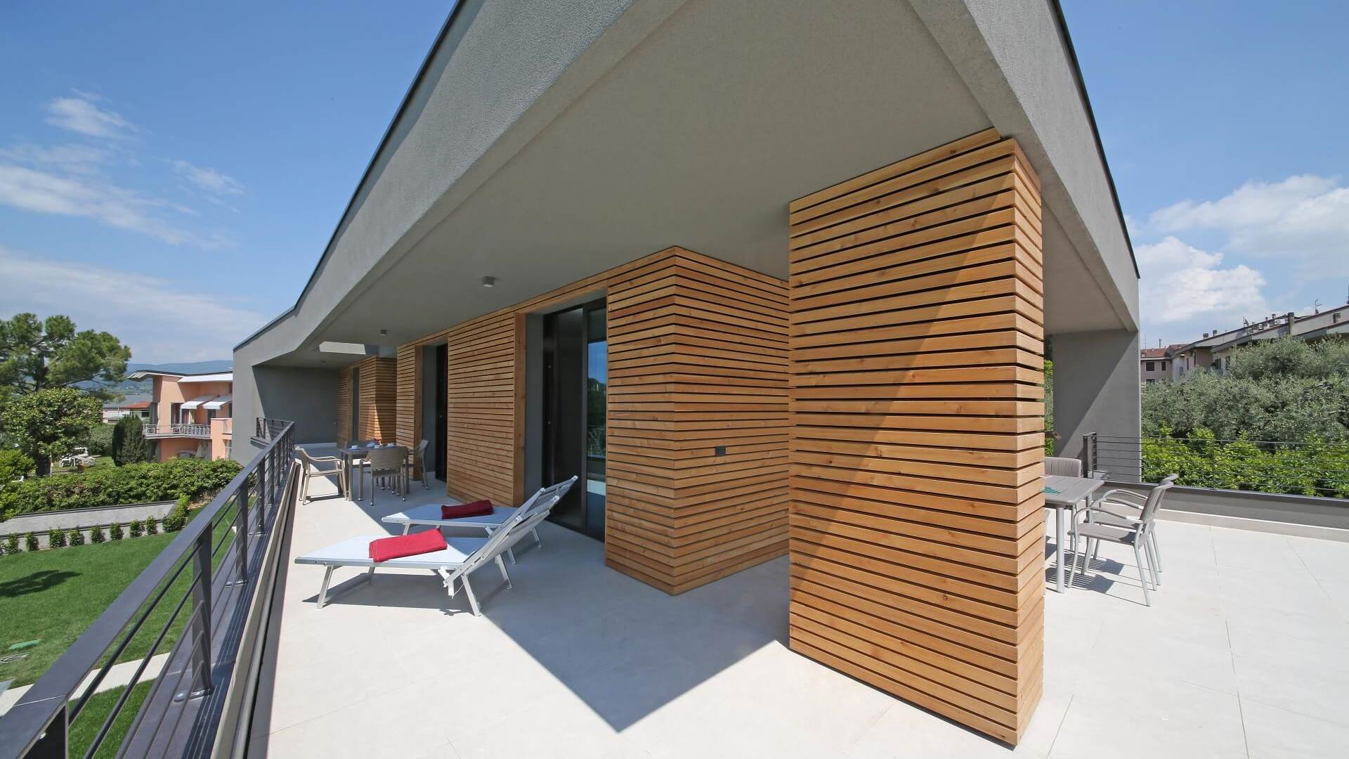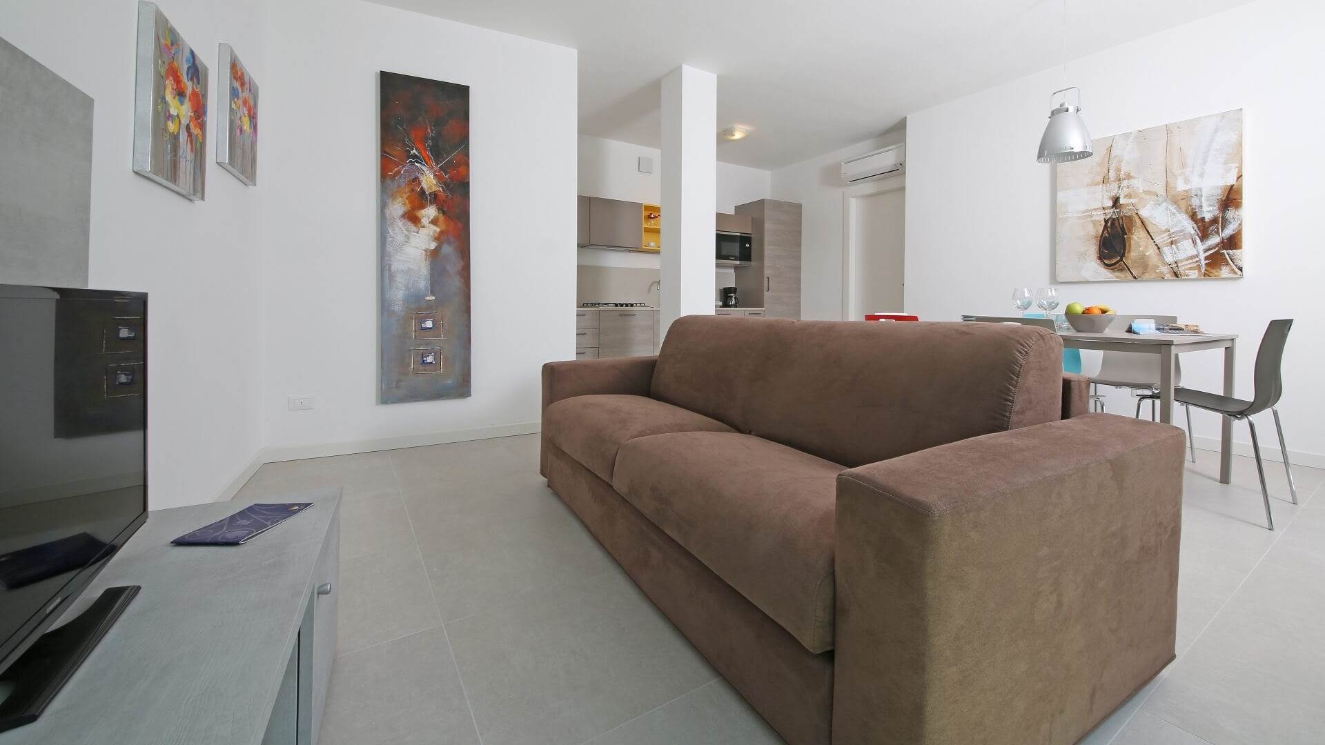 Gli appartamenti sono luminosi, con arredi dal gusto minimal e dettagli contemporanei; ogni unità dispone di balcone o terrazza arredata, ideale per trascorrere le giornate di sole all’aria aperta. Per ogni appartamento è incluso anche un posto auto privato in garage.