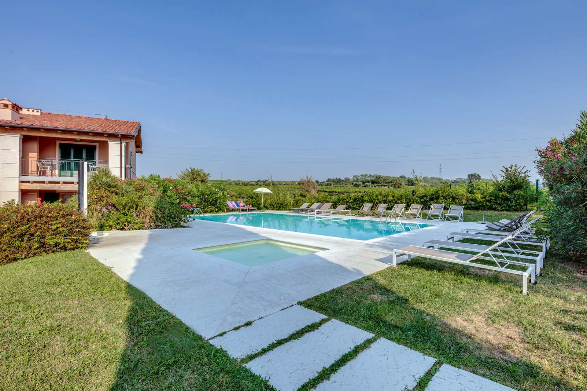 La tenuta si apre su un ampio giardino con due piscine, una principale e una dedicata ai bambini, creando un’atmosfera tranquilla per vivere le giornate all’aria aperta. L’area barbecue invita a condividere momenti semplici e piacevoli, che profumano di vacanza e tempo ritrovato. Gli animali domestici sono ammessi su richiesta.