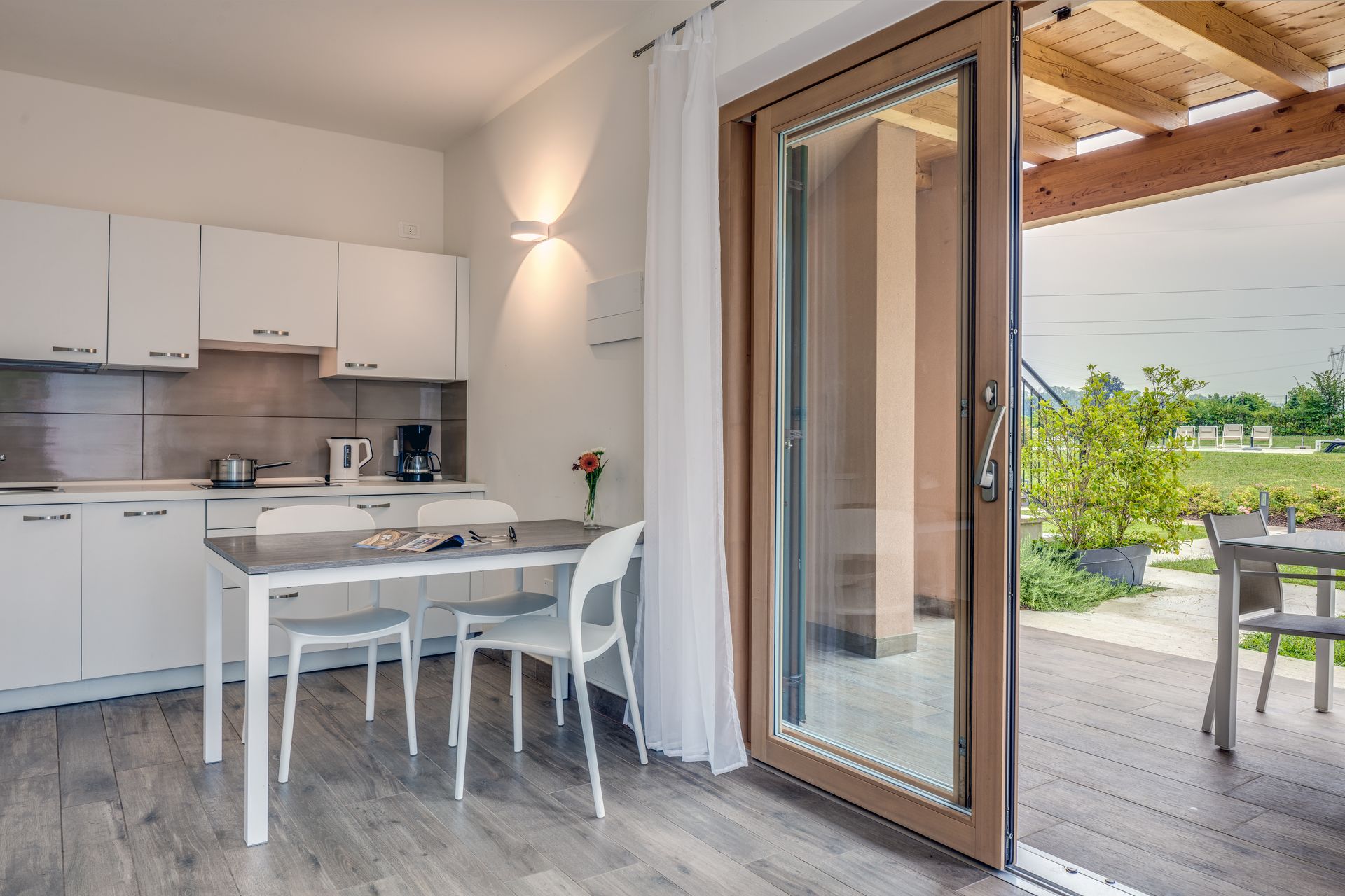I 14 appartamenti, moderni e accoglienti, offrono angolo cottura attrezzato e spazi curati. Balconi e terrazze arredate permettono di godersi il piacere di fermarsi e respirare, trasformando ogni soggiorno in un’occasione per riconnettersi con la natura e con sé stessi.